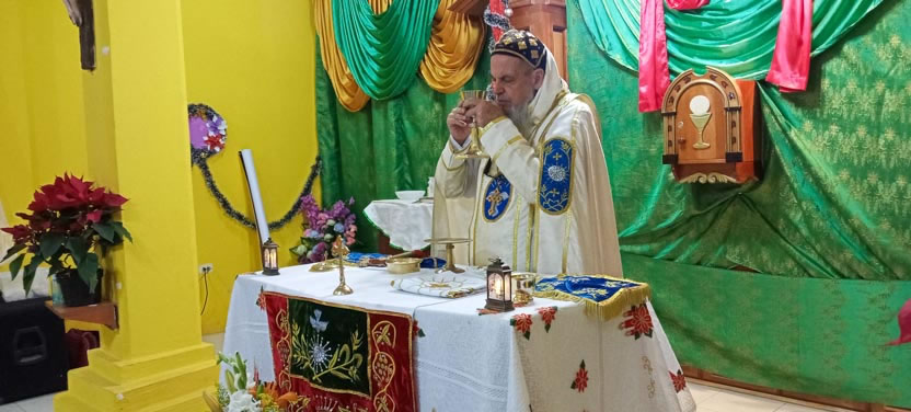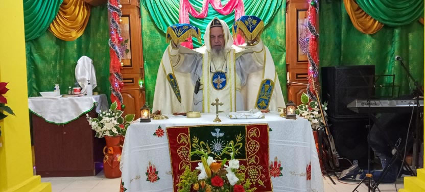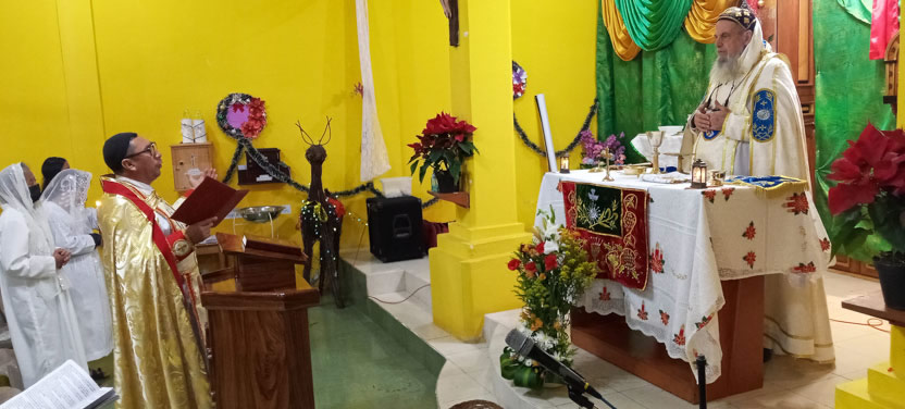 Las actividades del arzobispo en Comalapa, culminaron con la celebración de la divina liturgia de la Natividad del Señor. Concelebraron con el arzobispo los padres Francisco y Eliseo.