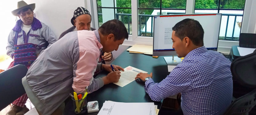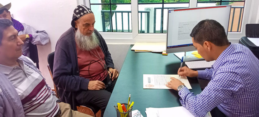 Sin embargo, la primera actividad que se realizó, fue la firma de documentos, por los cuales, el hermano Manuel, dona una parte y vende otra, para contruir el Centro Parroquial, en la Aldea Tzisbaj.