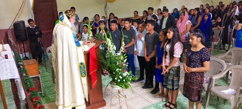 El martes 27 de diciembre, el arzobispo llegó hasta la aldea de Tzisbaj, para visitar a los hermanos de la parroquia San Ignacio de Antioquía, que celebran el primer aniversario de la parroquia.