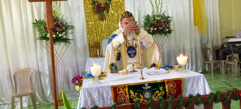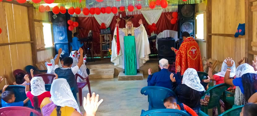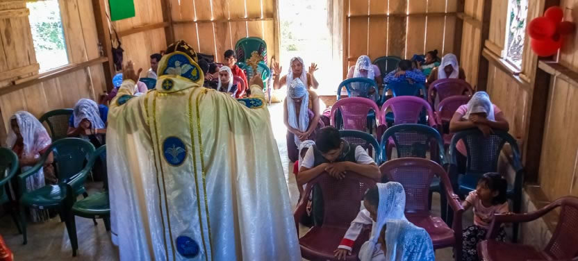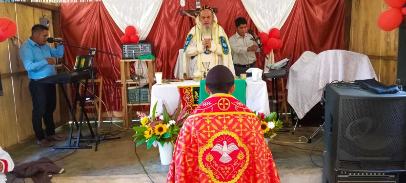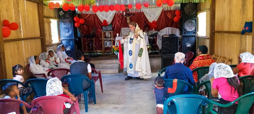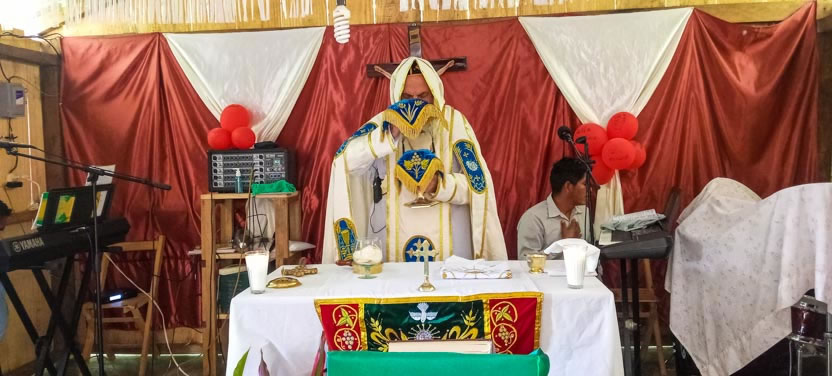 | 28: DIVINA LITURGIA EN LA SEDE DE LA PARROQUIA EL BUEN PASTOR, AMPARO AGUA TINTA, CHIAPAS, MÉXICO. |
