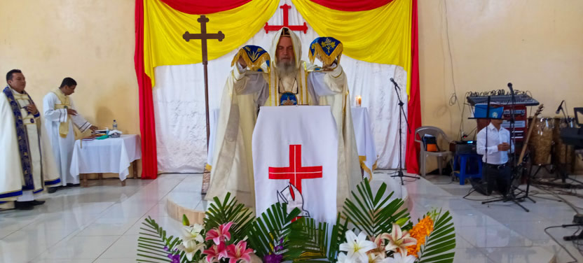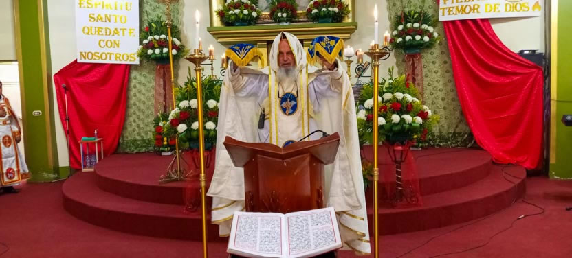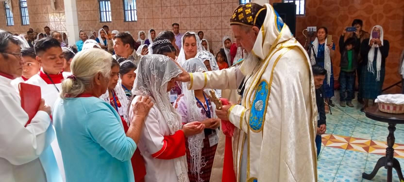 Después de las confirmaciones, el arzobispo presidió la celebración de la divina liturgia, la cual fue concelebrada por el padre Bernabé Mateo Nieto, párroco local.