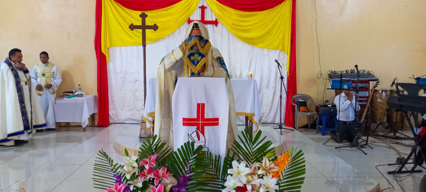 Finalmente, el arzobispo presidió la celebración de la divina liturgia, para rogar por el nuevo consejo pastoral de la catedral de San Juan Bautista, Comalapa.