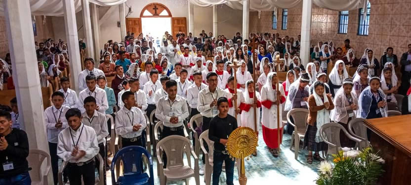 Los hermanos de la comunidad El Quetzal, prepararon un grupo de 49 jóvenes, para que recibieran la confirmación de la crismación y el envío misionero.