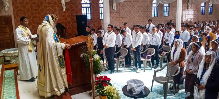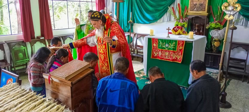 La visita a Saclecán concluyó con la celebración de la divina liturgia, presidida por el arzobispo y concelebrada por el padre Hugo Patzán, párroco local.
