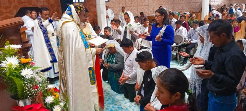 El centro de la visita del arzobispo a la parroquia de Soloma lo constituyó la administración de la confirmación y el envío misionero a 35 jóvenes de la parroquia.