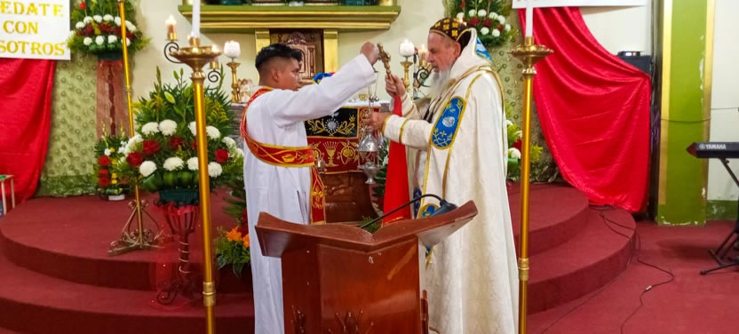 Finalmente, el arzobispo presidió la celebración de la divina liturgia para los hermanos de la comunidad de El Quetzal, habiendo concelebrado el Padre Hugo, párroco local.