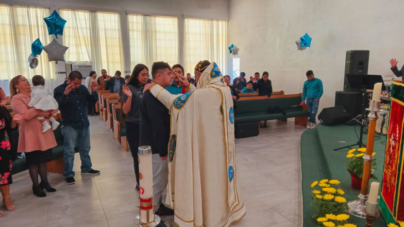 También, después de administrar los sacramentos de la iniciación cristina, invitó a Alex, hijo de la hermana Jaqueline Martínez quien, hace poco más de un mes fue sometido a una delicada a pasar adelante.