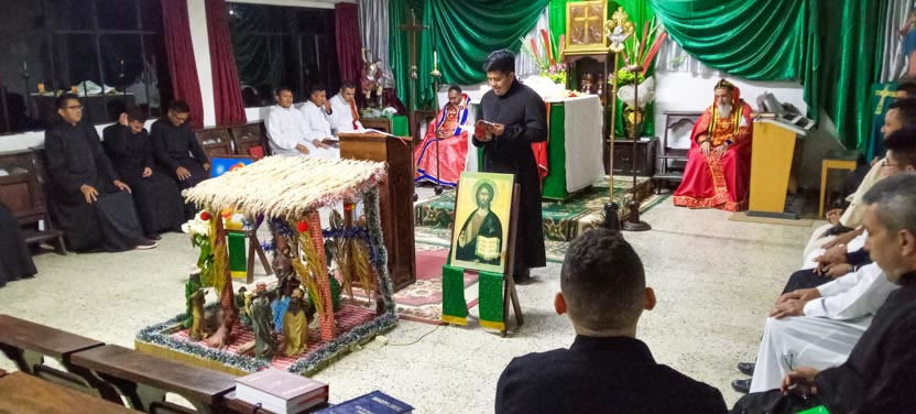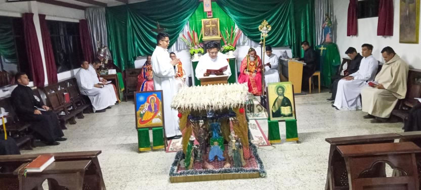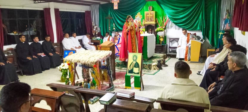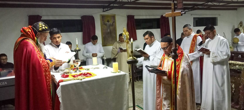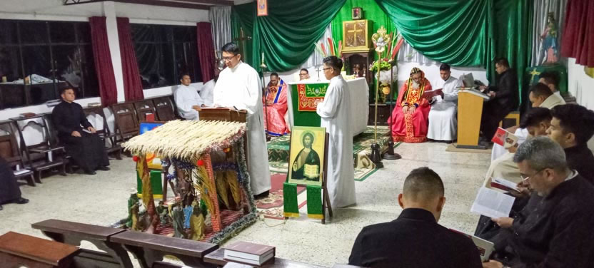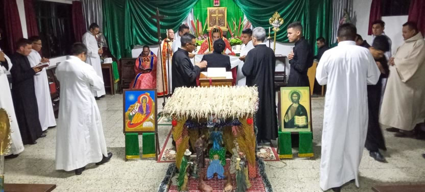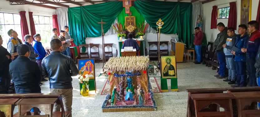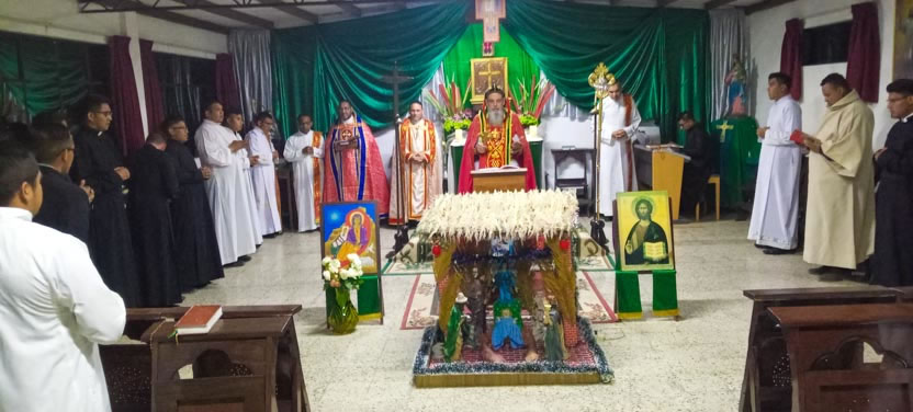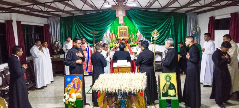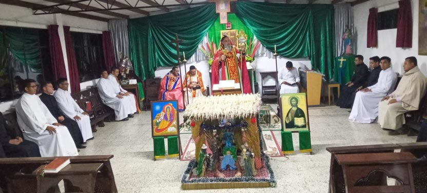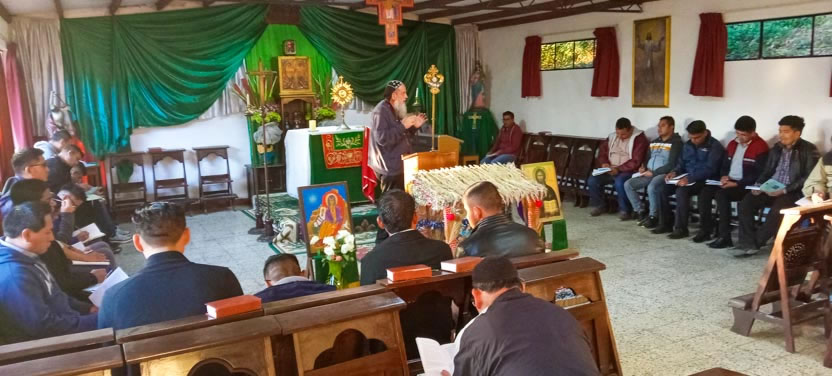 La primera jornada de los ejercicios espirituales del seminario concluyó con la celebración de la divina liturgia, presidida por el arzobispo y concelebrada por los padres Luis Uyoa y Ángel Cáseres.