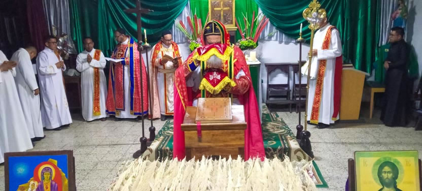 Seguidamente, el arzobispo presidió la celebración de la divina liturgia ocn los hermanos que estaban participando en las actividades de la parroquia.