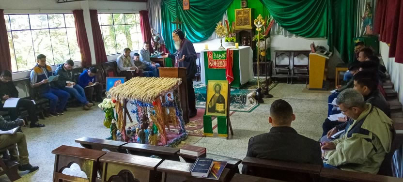 La actividad del retiro, aunque en forma sencilla, concluyó con la celebración de la divina liturgia, presidida por el arzobispo y concelebrada por los padres Luis y Ángel.