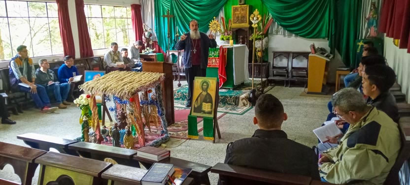 Después de un largo tiempo de meditación y oración, el arzobispo dirigió a los seminaristas la segunda meditación de los ejercicios espirituales, la cual versó sobre la espiritualidad del seminarista ortodoxo.