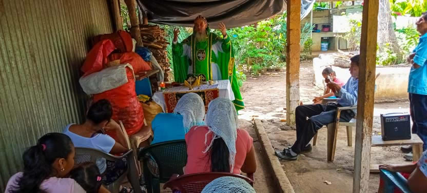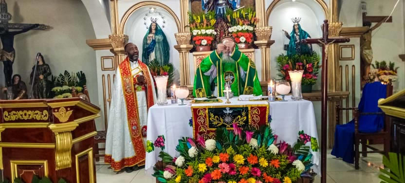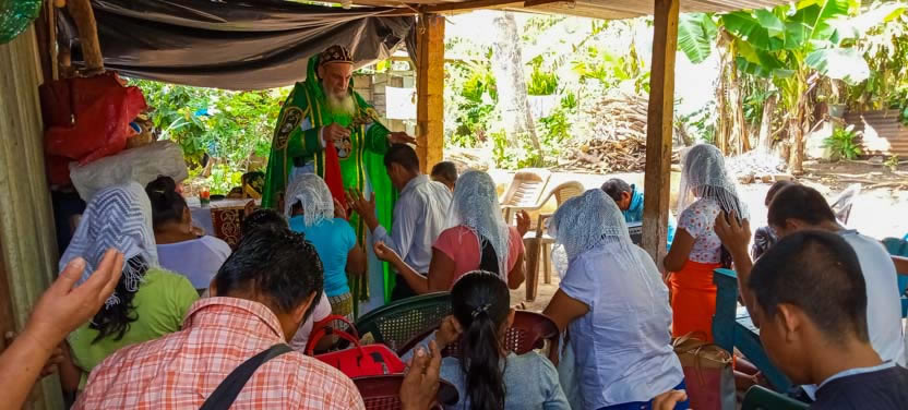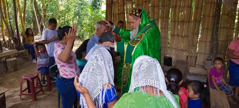 La visita a la comunidad de Nahualate concluyó con la celebración de la divina liturgia, la cual fue presidida por el arzobispo, en un ambiente de oración profunda.