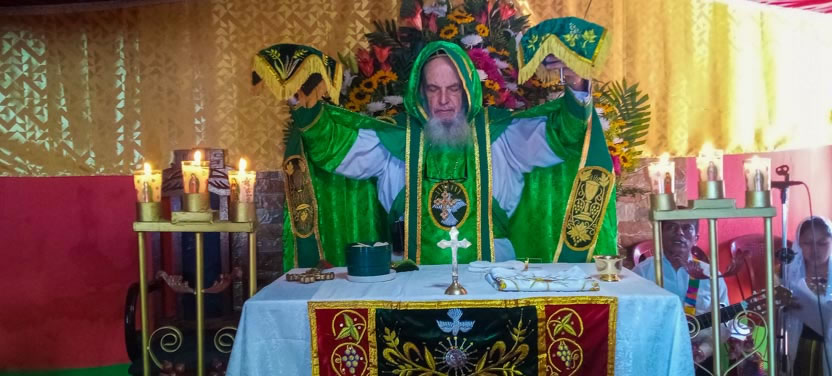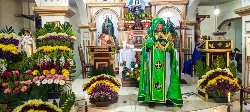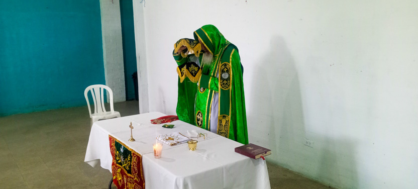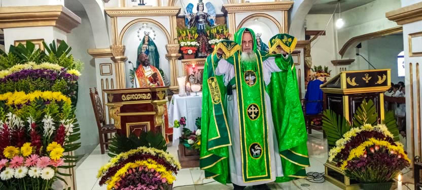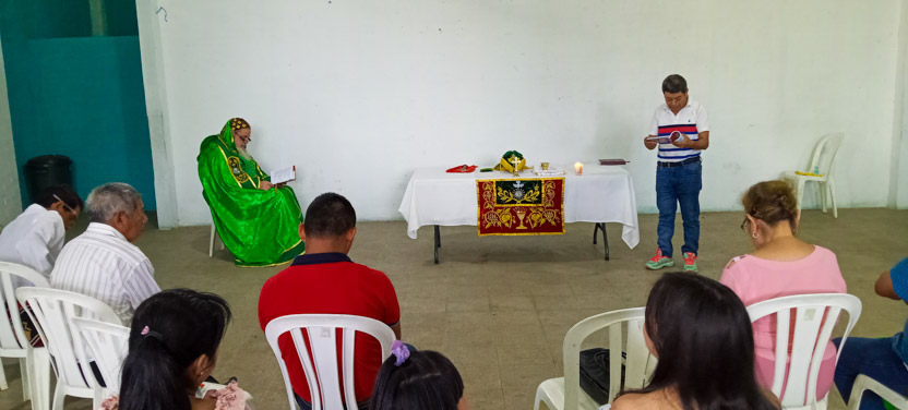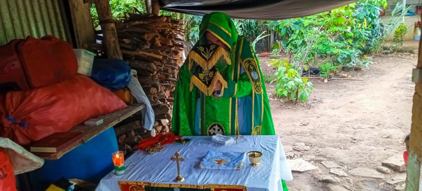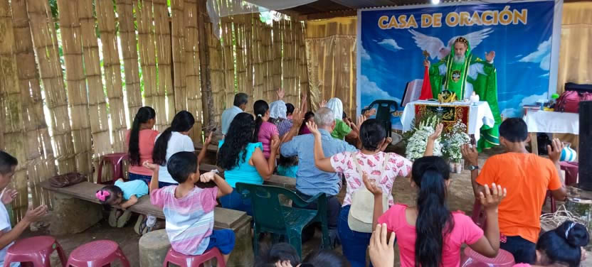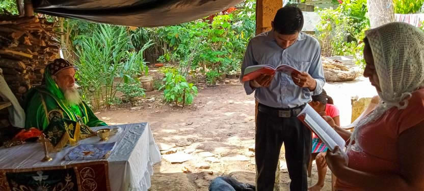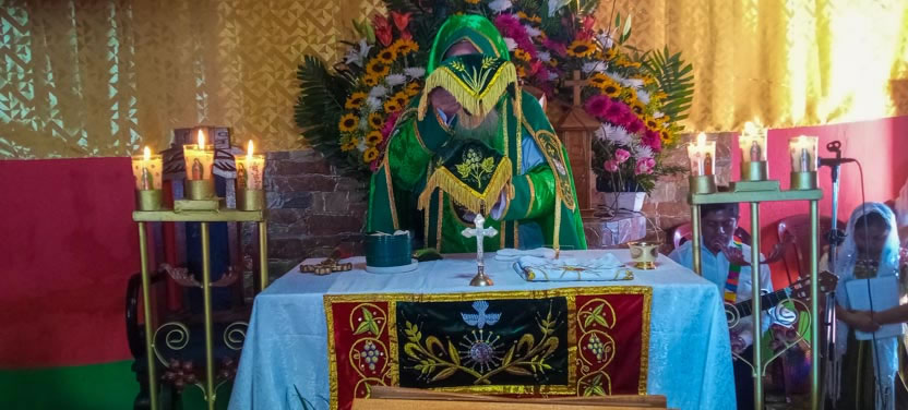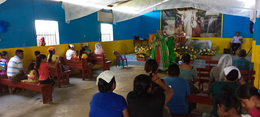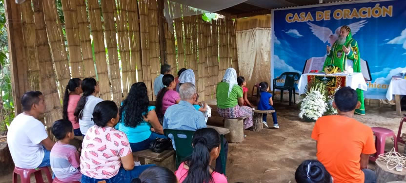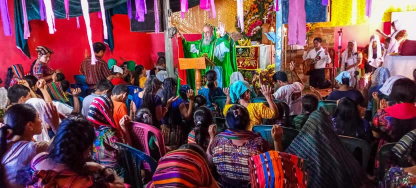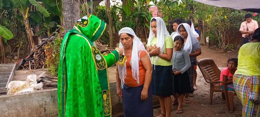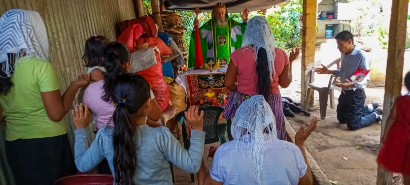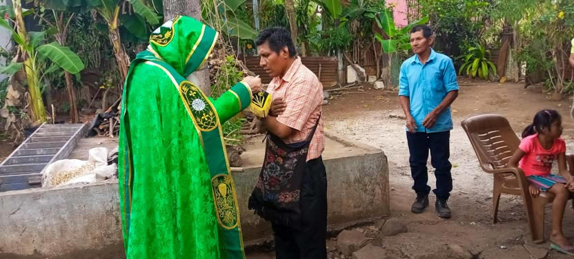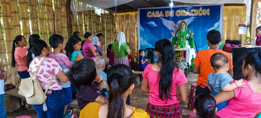Los hermanos de Cuyotenango están a punto de culminar la construcción de su templo, sin embargo, por el momento, la liturgia se celebra en la cas del hermanos Crescencio.