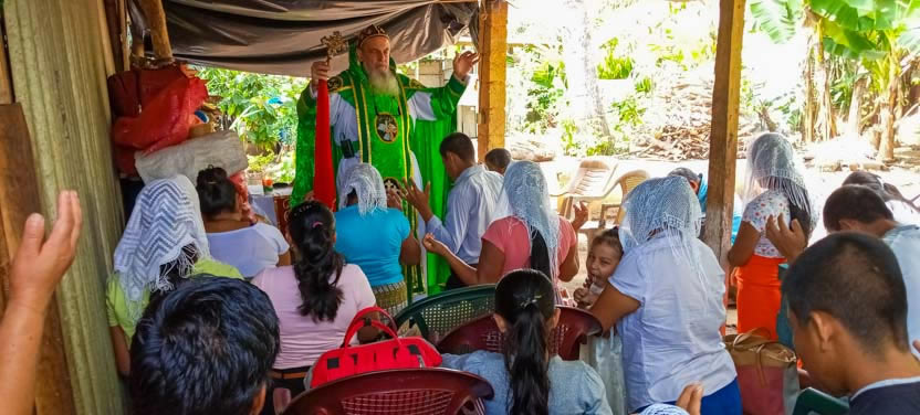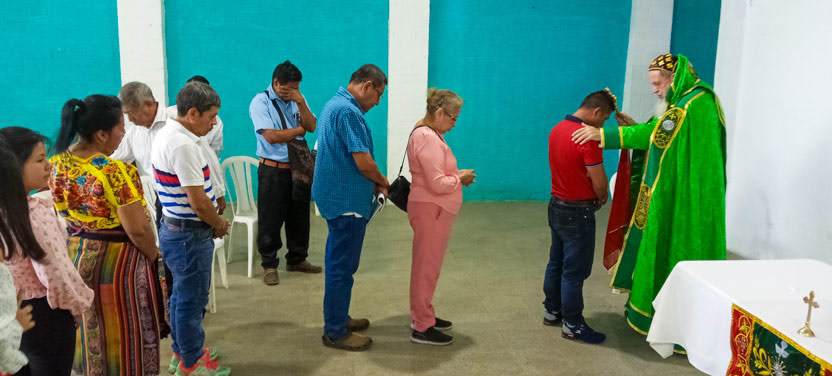 Finalmente, el arzobispo presidió la celebración de la divina liturgia con los hermanos de la comunidad de Xojolá y con algunos invitados que habían venido de otras comunidades.