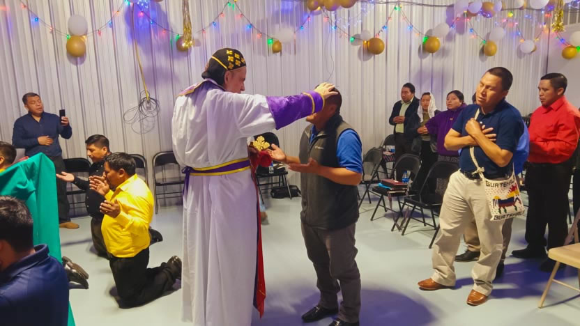 El hermano Domingo, originario de Cunén y miembros del grupo de lectores de la comunidad, se preparó esmeradamente para recibir la confirmación de la crismación.