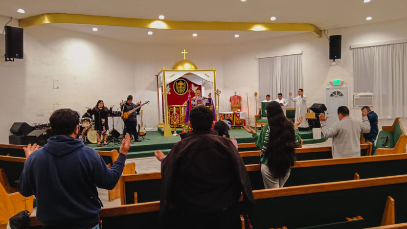 Finalmente, el arzobispo presidió la celebración de la divina liturgia con los hermanos de la comunidad Pacto Divino, ubicada en el centro de la ciudad de Los Ángeles.