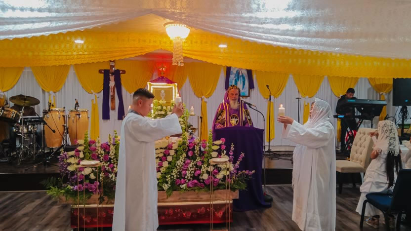 La visita a la comunidad Poder del Espíritu Santo concluyó con la celebración de la divina liturgia, presidida por el arzobispo.
