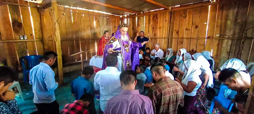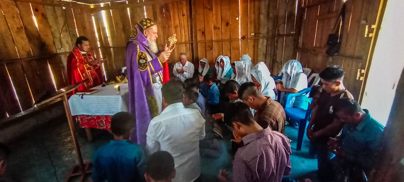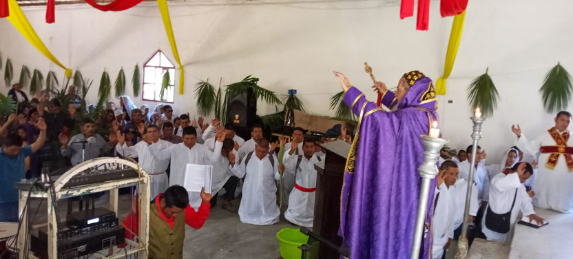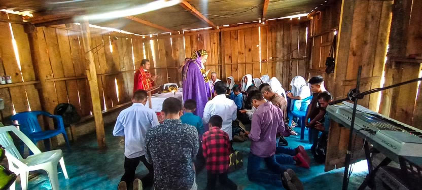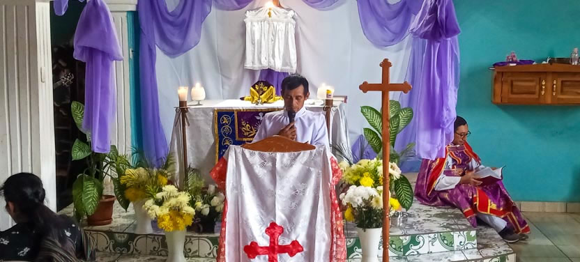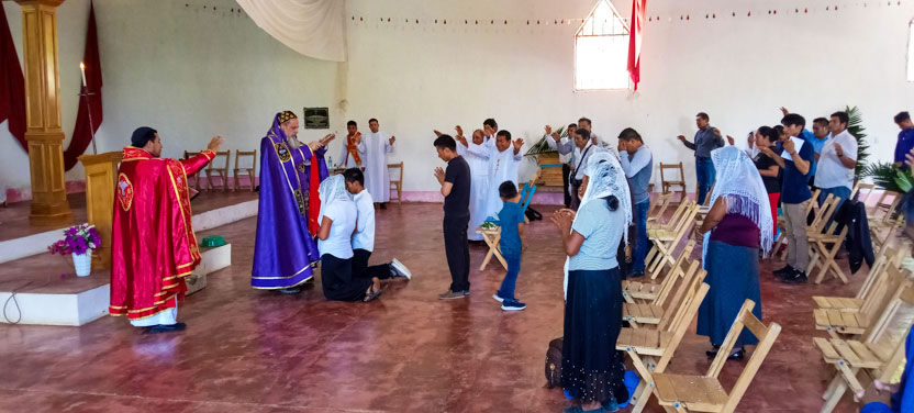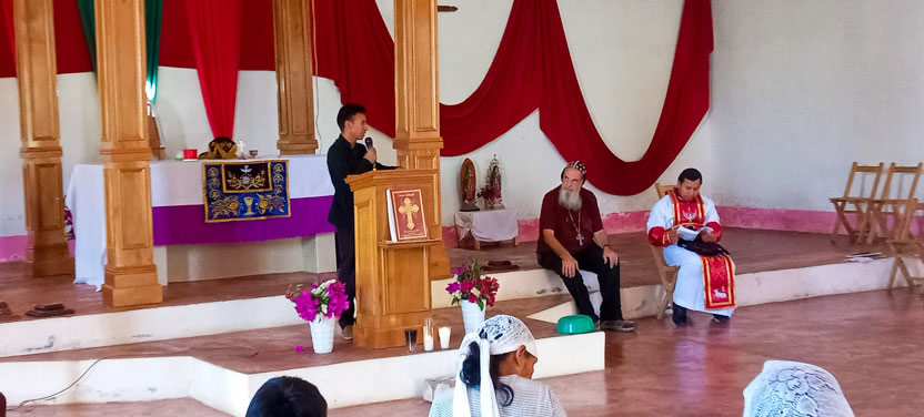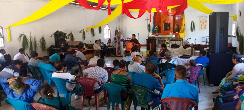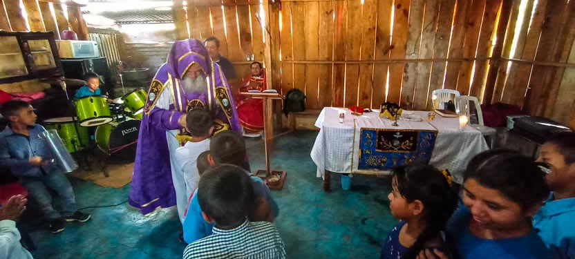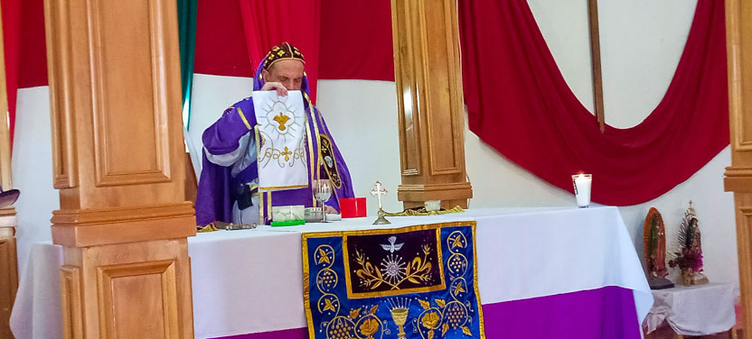 01: DIVINA LITURGIA EN LA SEDE DE LA PARROQUIA BUEN PASTOR, AMPARO AGUA TINTA, MARGARITAS, CHIAPAS.