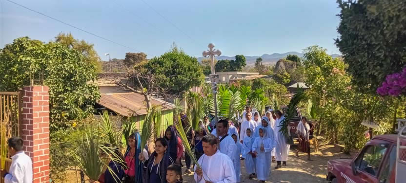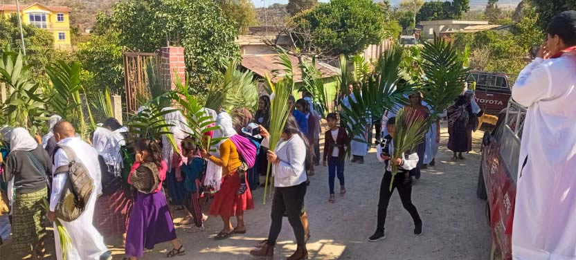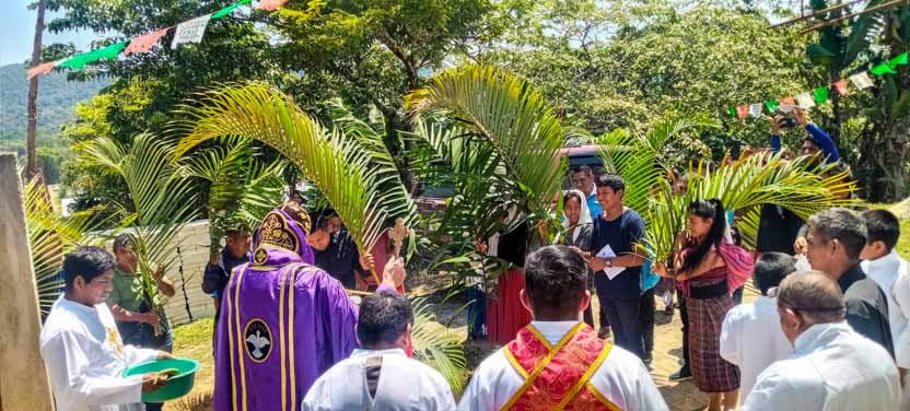 01: BENDICIÓN DE LOS RAMOS, PARROQUIA BUEN PASTOR, AMPARO AGUA TINTA, CHIAPAS, MÉXICO.