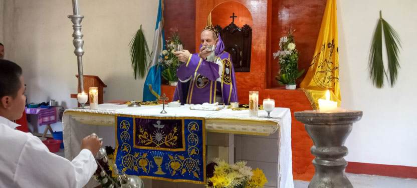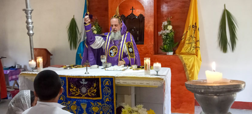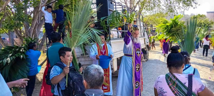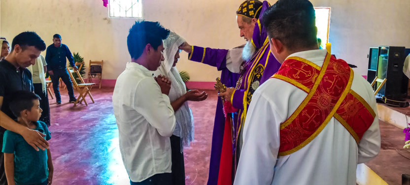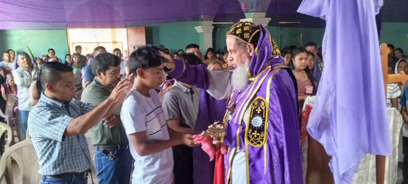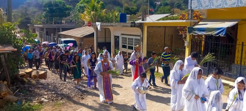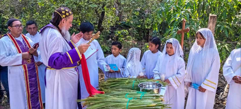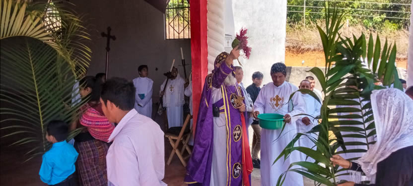 El domingo de ramos, 2 de abril, el arzobispo presidió la celebración de la bendición de ramos y la procesión hacia el templo en la parroquia Renovación Carismática de Antioquía, Guaxacaná, Nentón.