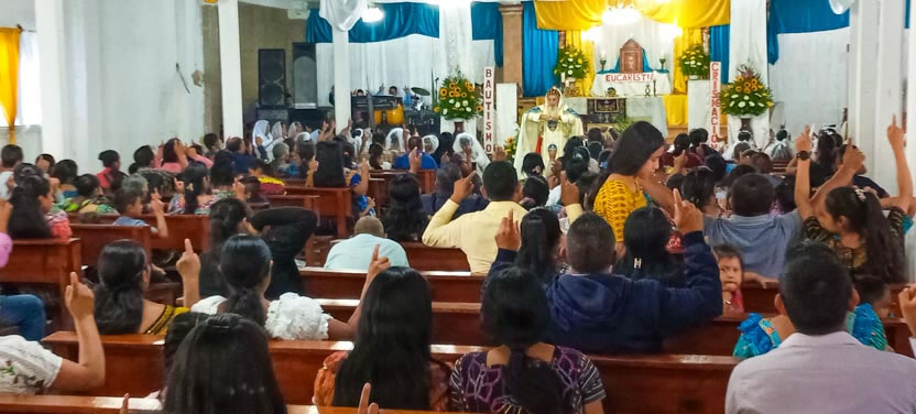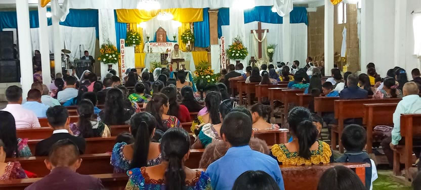 Seguidamente, se comenzó con las celebraciones litúrgicas en la sede de la parroquia de la Santísima Trinidad de Uspantán, El Quiché.