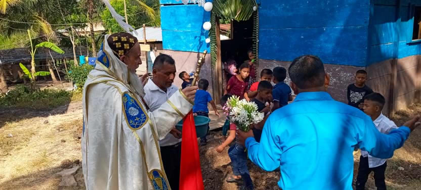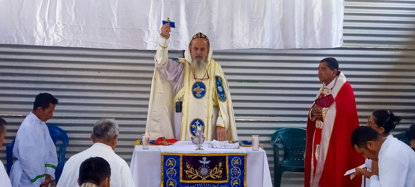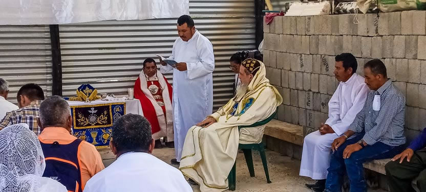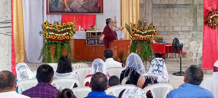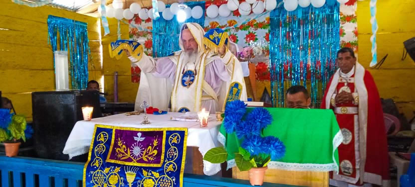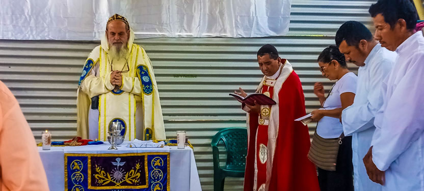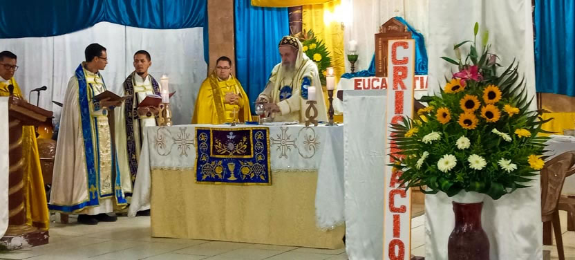 Seguidamente, el arzobispo presidió la celebración de la divina liturgia, la cual fue concelebrada por el padre Óscar Guardado, encargado pastoral local.
