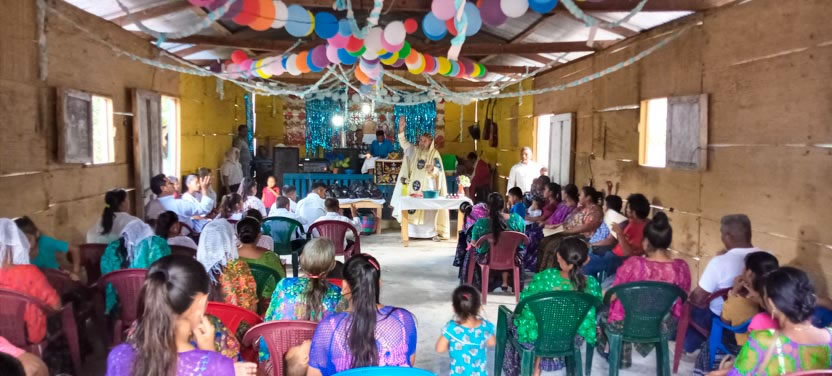 El mismo lunes 10, después del mediodía, el arzobispo llegó hasta la comunidad de La Linterna Dos, de la parroquia de San Fernando, Sayajché, Petén.
