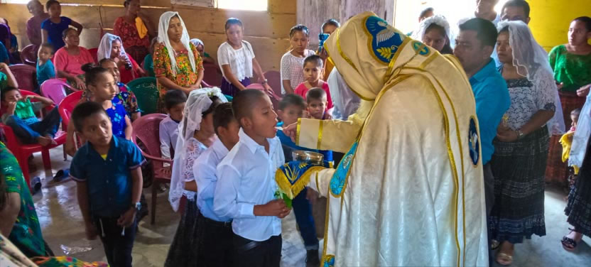 El domingo de resurrección, 9 de abril, a media mañana, el arzobispo llegó hasta la sede del Centro Pastoral de San Luis Las Anonas, Chicamán, El Quiché.