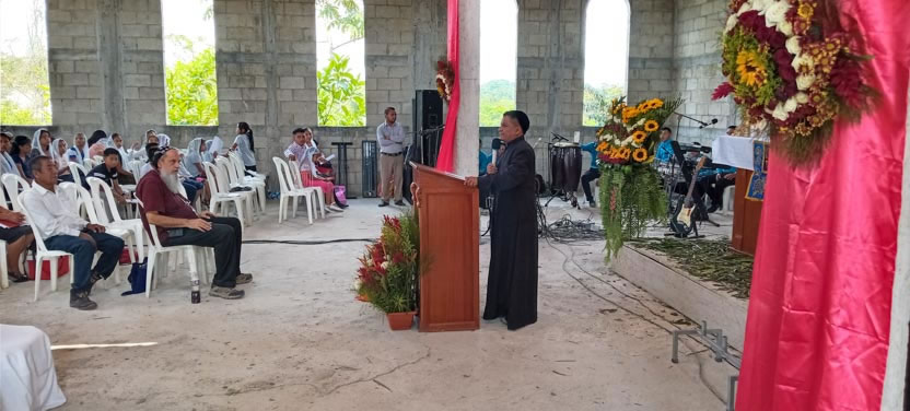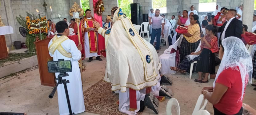 El lunes 10 de abril, por la mañana, llegó el arzobispo hasta el lugar en donde se está construyendo el templo de la comunidad de Sayajché, para presidir el decanato de El Petén.