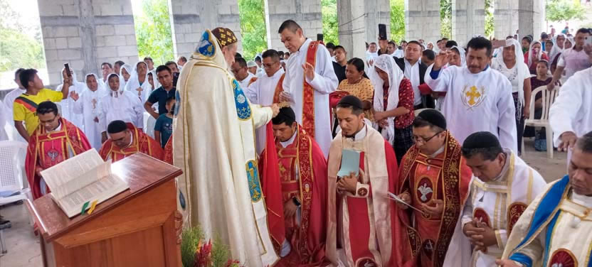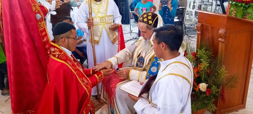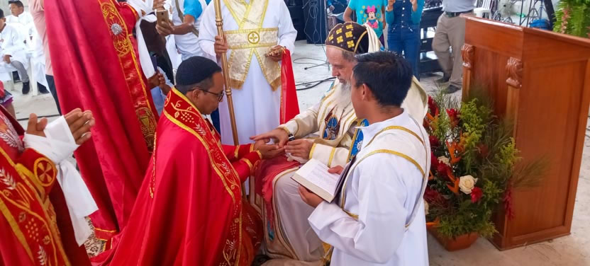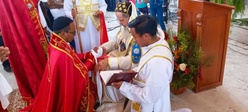En el momento establecido, después del rezo de la Anáfora de Santiago, se llevó a cabo el rito de ordenación de los nuevos presbíteros.