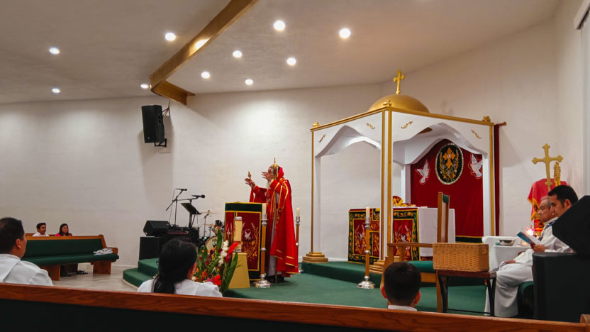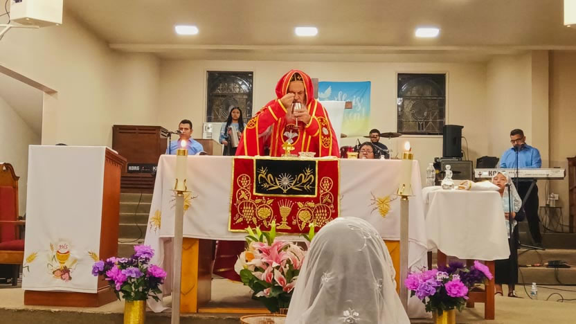 La visita a la comunidad Pacto Divino se concluyó con la celebración de la divina liturgia, presidida por el arzobispo.