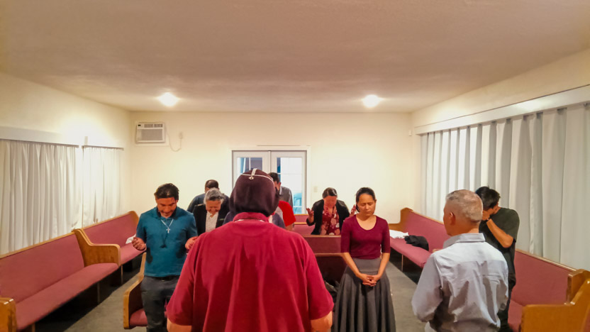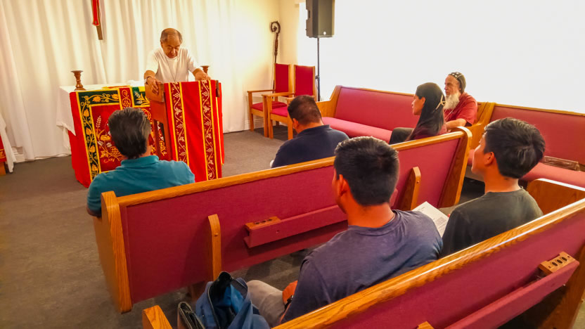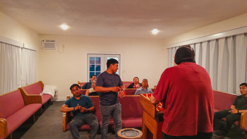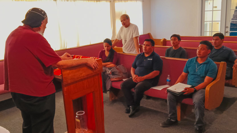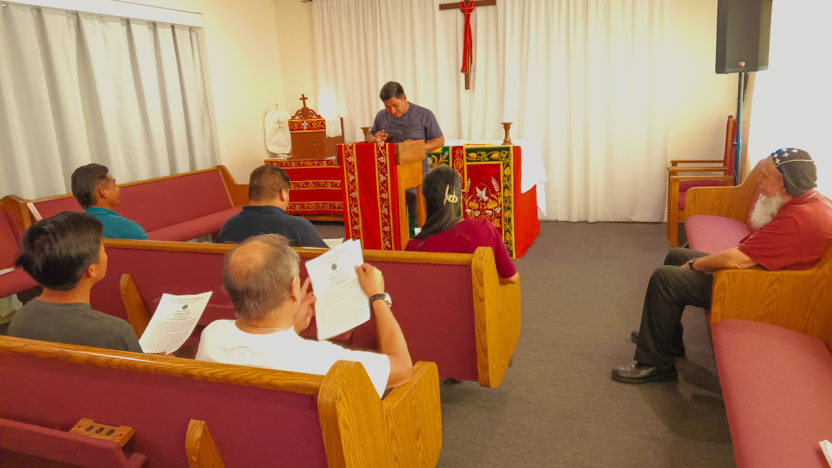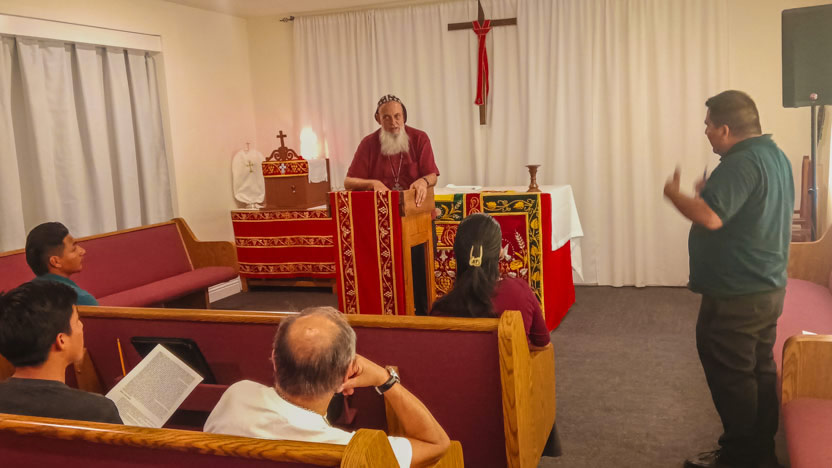 Después de que terminaron las actividades de la Asamble Sabatina, el arzobispo se reunión con 10 hermanos, de los cuales un buen número se está preparando para ser ministros para la distribución de la comunión.