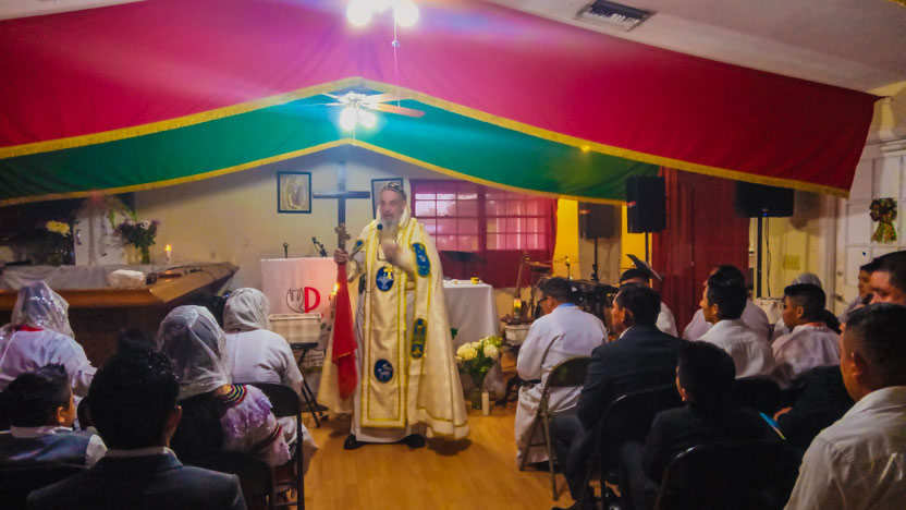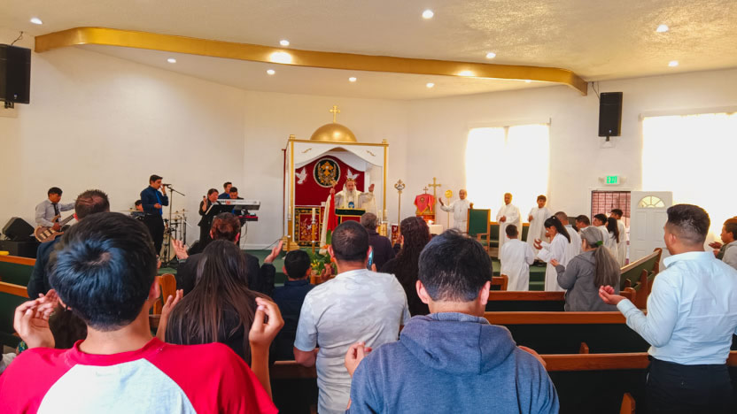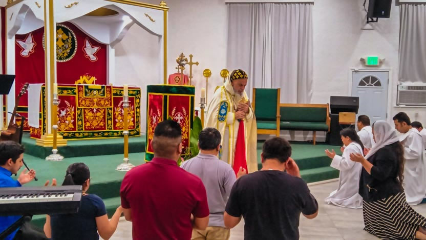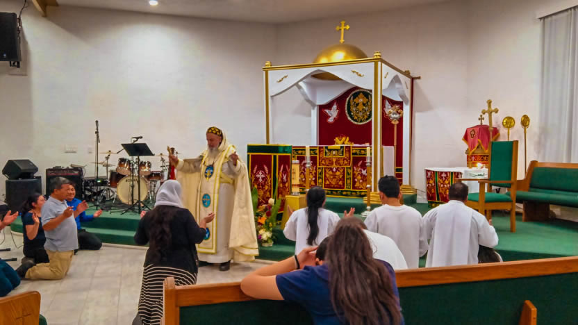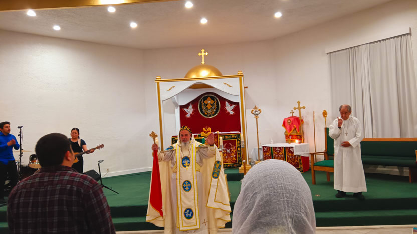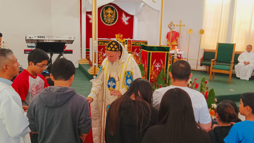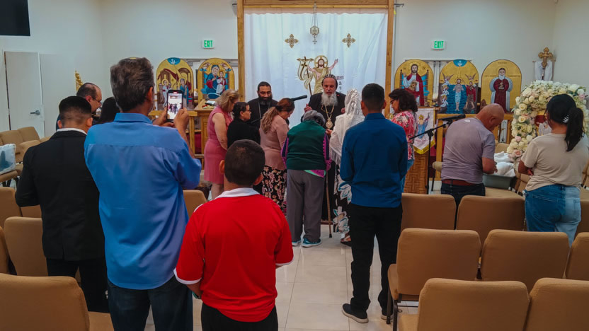El domingo 14, por la tarde, el arzobispo llegó hasta la sede de la parroquia Santo Tomás el Hermitaño, de la Iglesia Copta, que se encuentra en Temécula, California.
