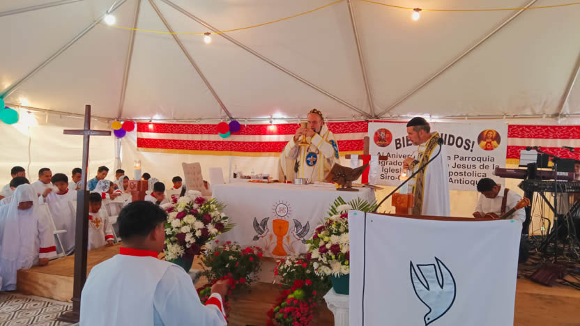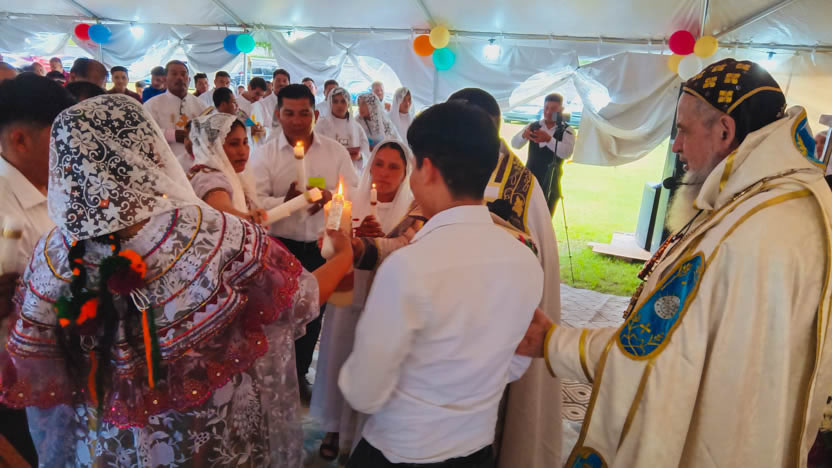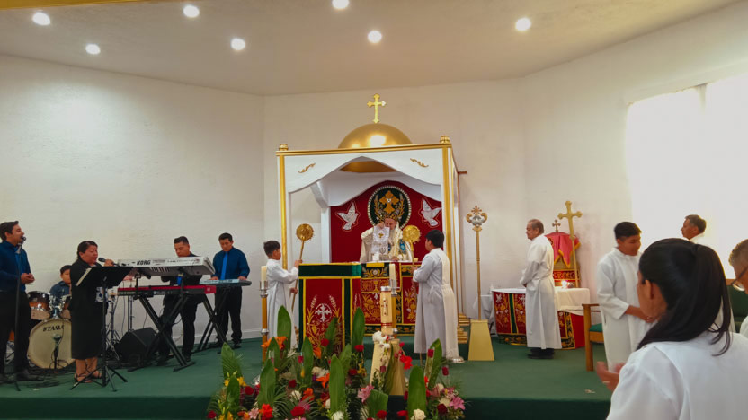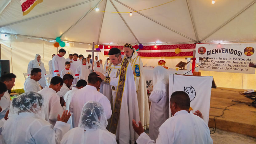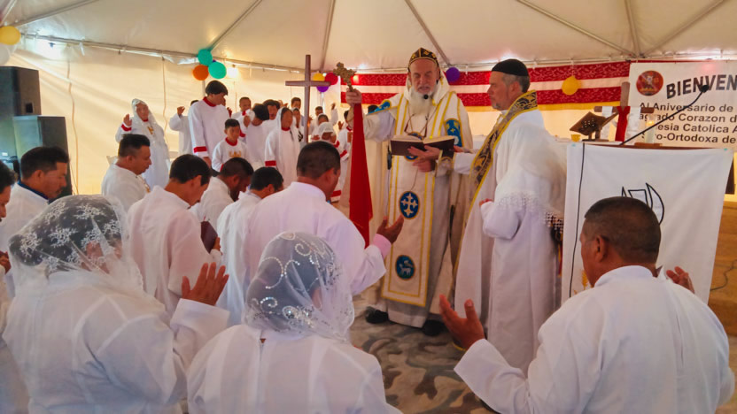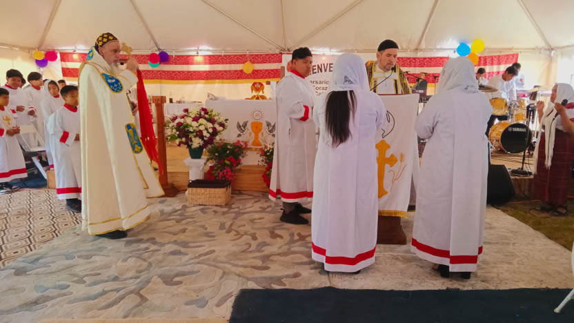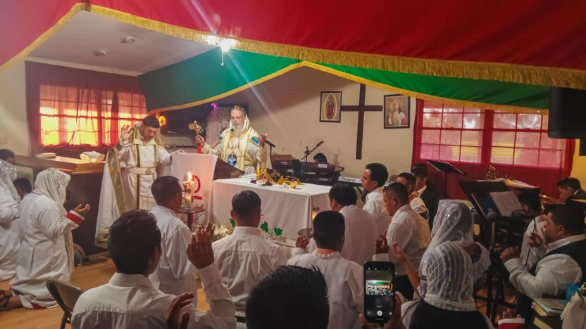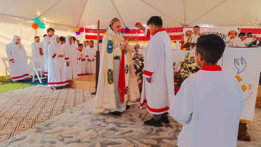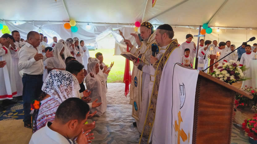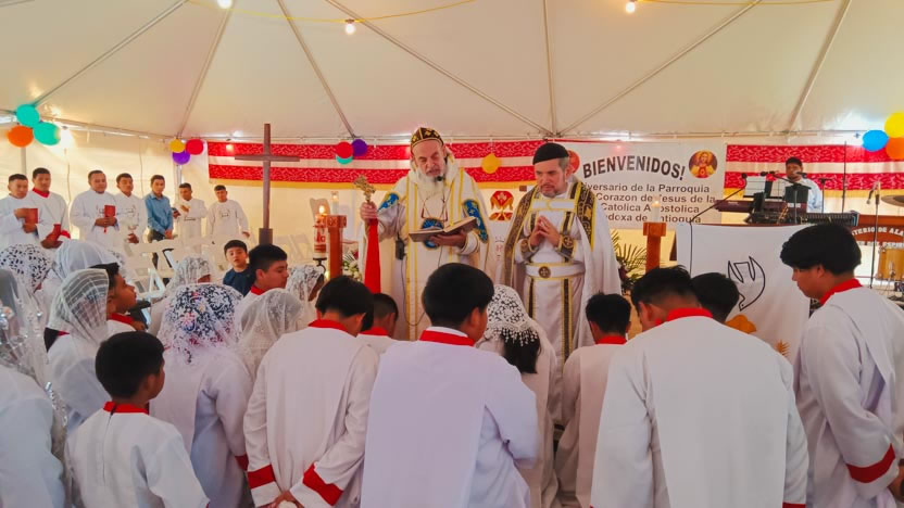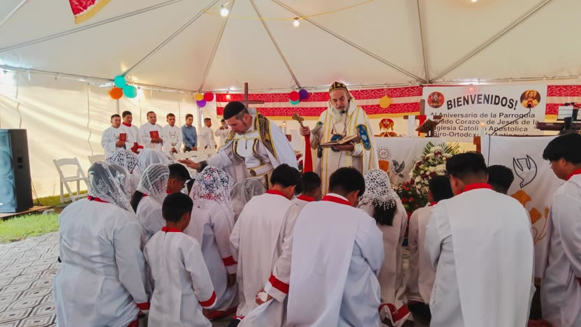 Seguidamente, el arzobispo presidió la celebración de la divina liturgia, la cual fue concelebrada por el padre Carlos Henrríquez Reyes, encargado pastoral local.