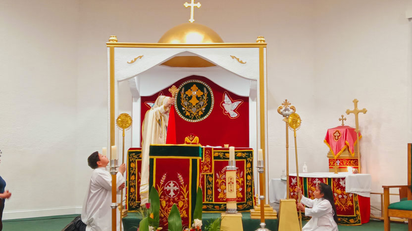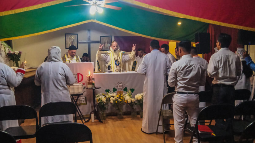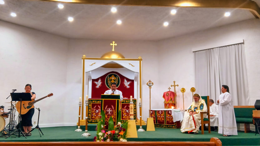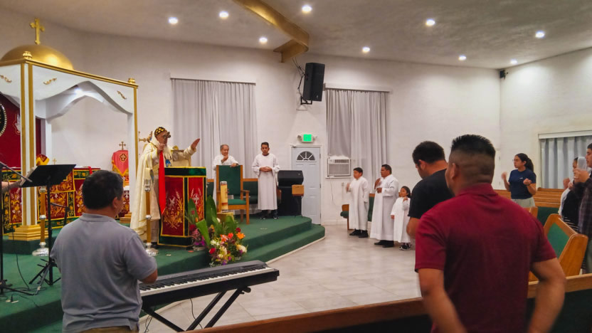 14: DIVINA LITURGIA EN LA SEDE DE LA PARROQUIA SAN MIGUEL ARCÁNGEL, EAST RANCHO DOMÍNGUEZ.