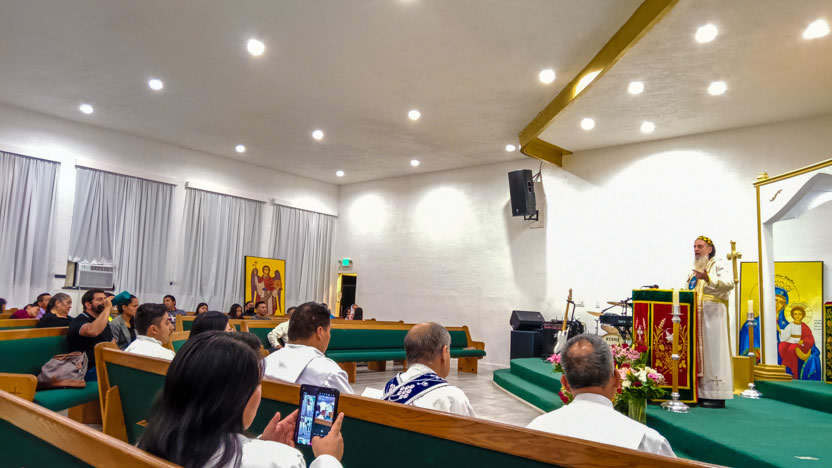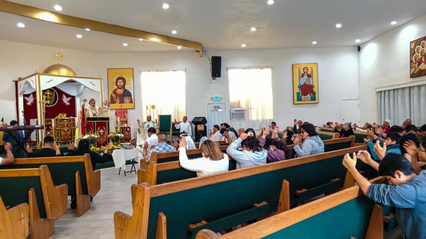 | 10: DIVINA LITURGIA EN LA PARROQUIA SAN MIGUEL ARCÁNGEL, EAST RANCHO DOMÍNGUEZ, LOS ÁNGELES, CALIFORNIA. |