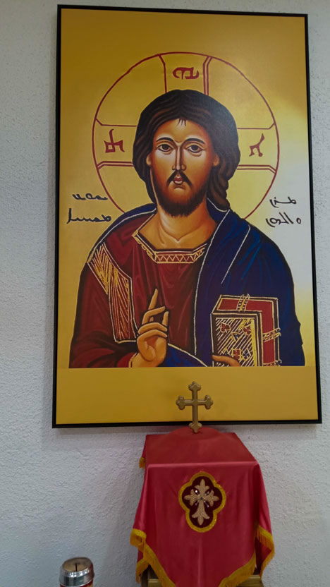 Finalmente el 2 por la tarde, el arzobispo recogió los iconos y el sábado 3, antes de partir para el Santo Sínodo, se comenzó el proceso de colocación: se trata de 6 iconos, los cuales reflejarán diversas etapas de la historia de la salvación. |