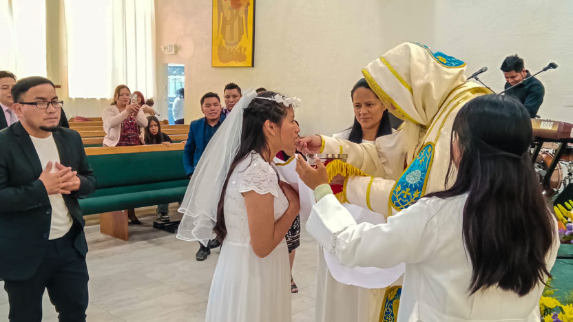 Dentro del marco de las celebraciones litúrgias se administraron los tres sacramentos de la iniciación cristiana a Glendy Sofía y a Layla Marie.