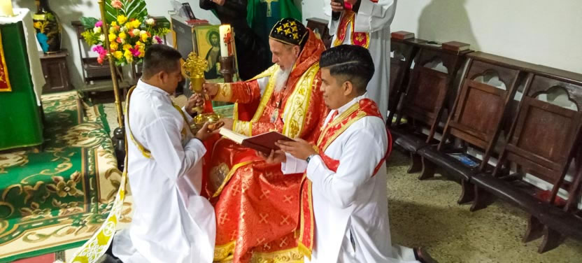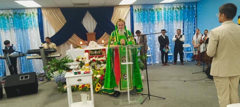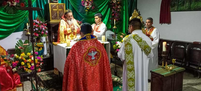 Seguidamente, el arzobispo presidió la celebración de la divina liturgia para los miembros de la comunidd Nueva Creación.