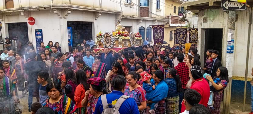 El arzobispo, también como parte de su participación en el cortejo procesional, aprovechó la oportunidad para ir saludando a la población de San Juan Comalapa.