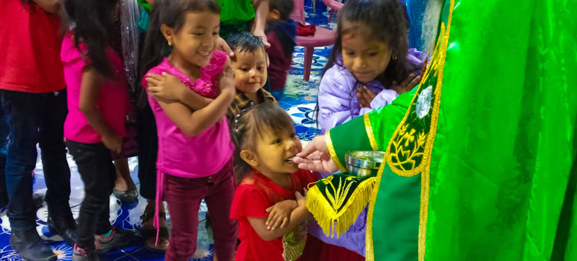 Una característica especial de la comunidad es la participación de numerosos niños, los cuales lo hacen con mucha atención y sincera devoción.
