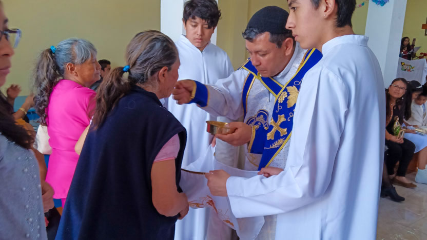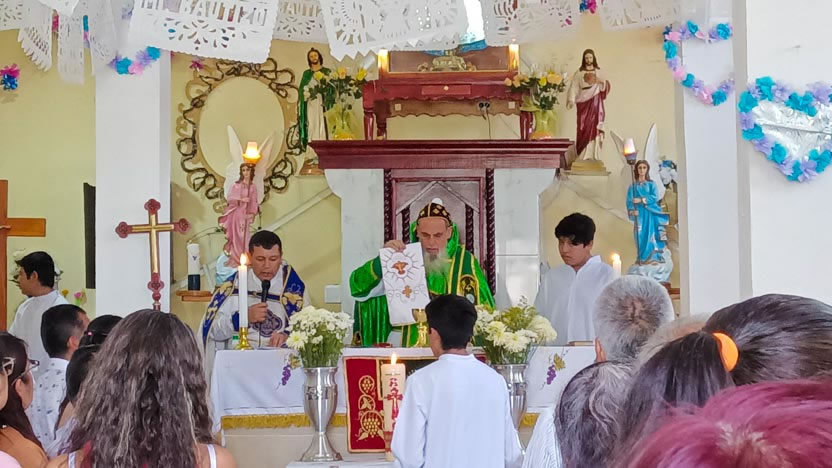 También, dentro del marco de las celebraciones litúrgicas, se administraron los sacramentos de la reconciliación al niño Miguel Aarón, hijo de Elías e Isabel, que contrajeron matrimonio el año pasado.