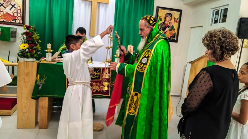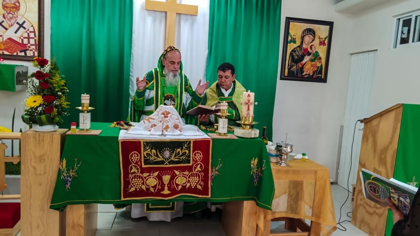 El momento culminante de la visita lo tuvo la celebración de la divina liturgia, la cual fue presidida por el arzobispo y fue concelebrada por el padre Henry.