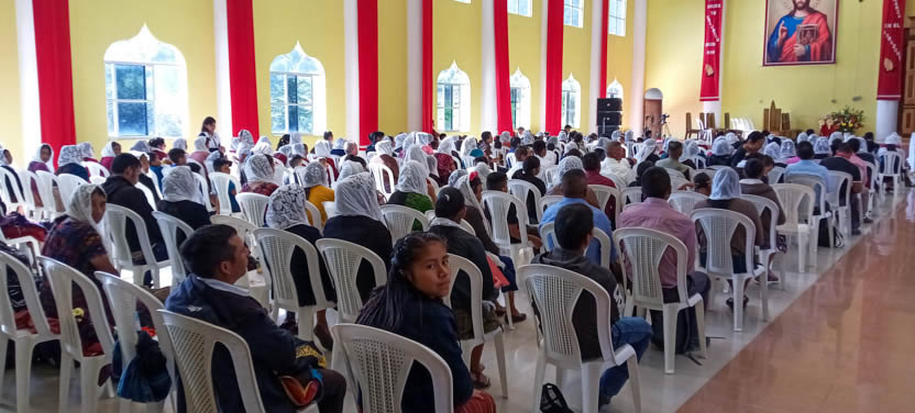 Hacia el final de la mañana, en la sede de la parroquia Glorificación de María de Santa Cruz Barillas, se comenzó con las diferentes celebraciones litúrgicas.
