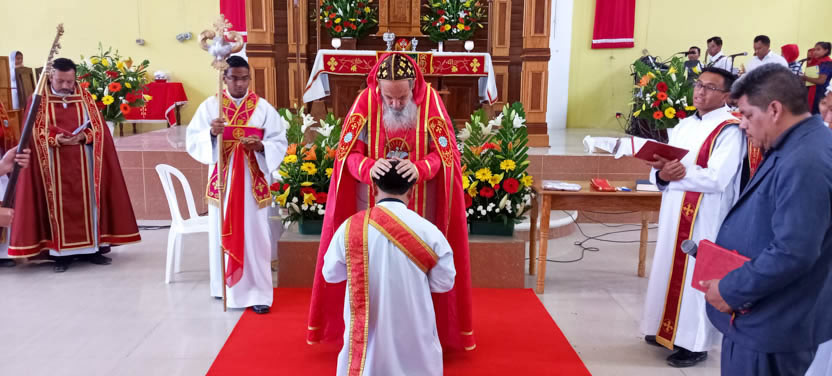El punto central de la visita del arzobispo a Santa Cruz Barillas, en esta ocasión, lo constituyó la ordenación diaconal del subdiácono Diego Juan Francisco.