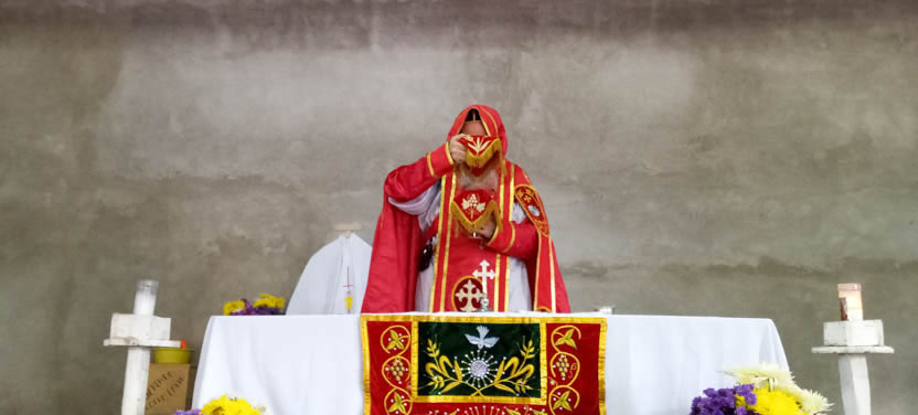 Los hermanos, después de muchos esfuerzos, han logrado construir el templo, habiendo querido que fuera el arzobispo quien celebrara la primera liturgia en el mismo, aún cuando aún están con trabajos de construcción. |