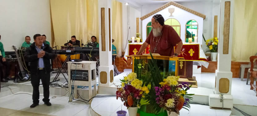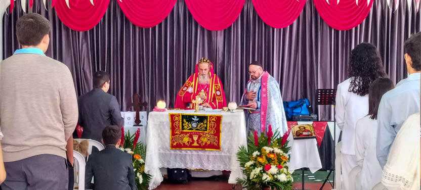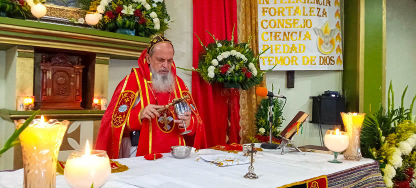 Finalmente, el arzobispo presidió la celebración de la divina liturgia, la cual fue concelebrada por el párroco local, padre Juan Arcadio y por el padre José Luis.