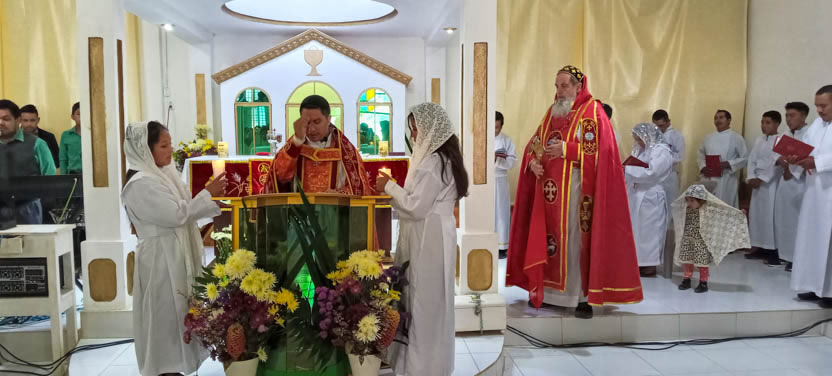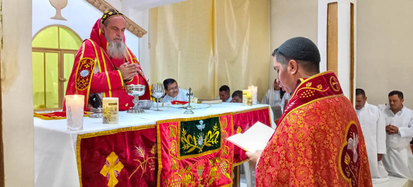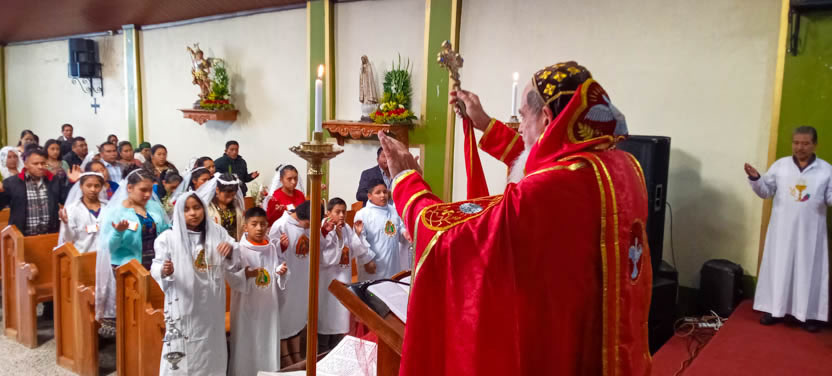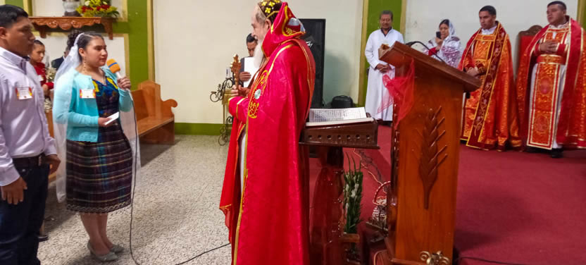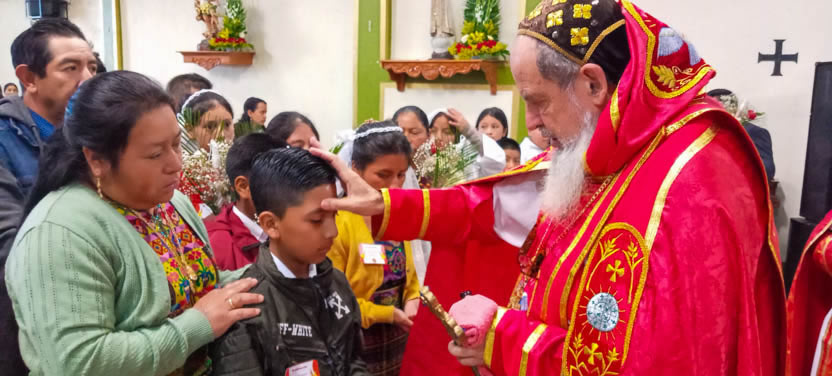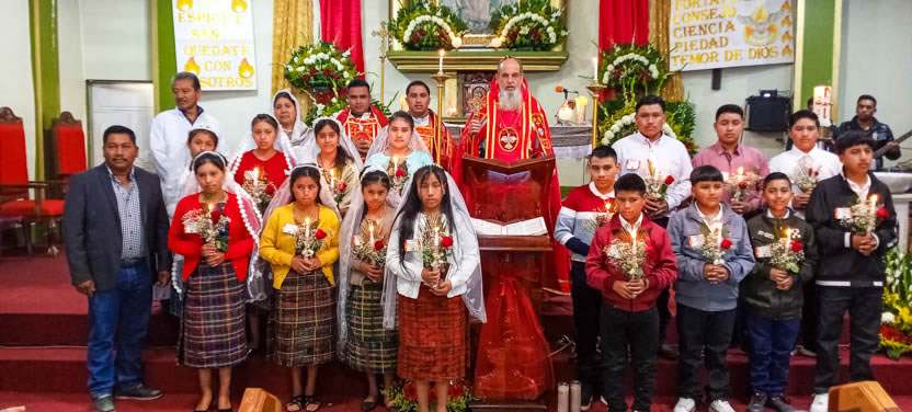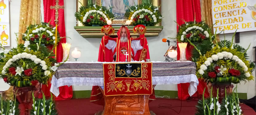 Finalmente, el arzobispo presidió la celebración de la divina liturgia, la cual fue concelebrada por el padre José Luis, párroco de la parroquia de San Miguel Acatán.