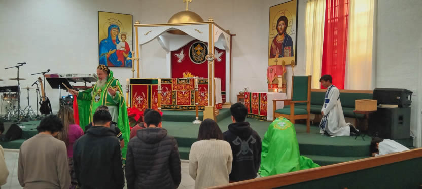 La jornada de introducción a la vida del seminario culminó con la celebración de la divina liturgia, la cual fue presidida por el arzobispo. Estuvo presente el monje José, obispo electo del norte.