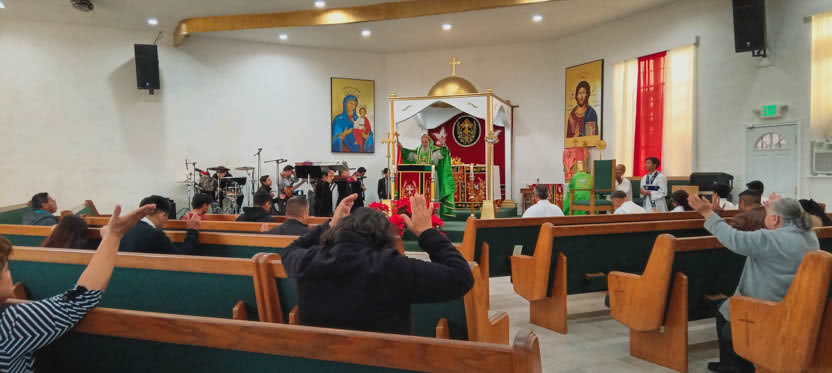 Finalmente, el arzobispo presidió la celebración de la divina liturgia con los hermanos de la comunidad Santa María de Guadalupe de Riverside, California.
